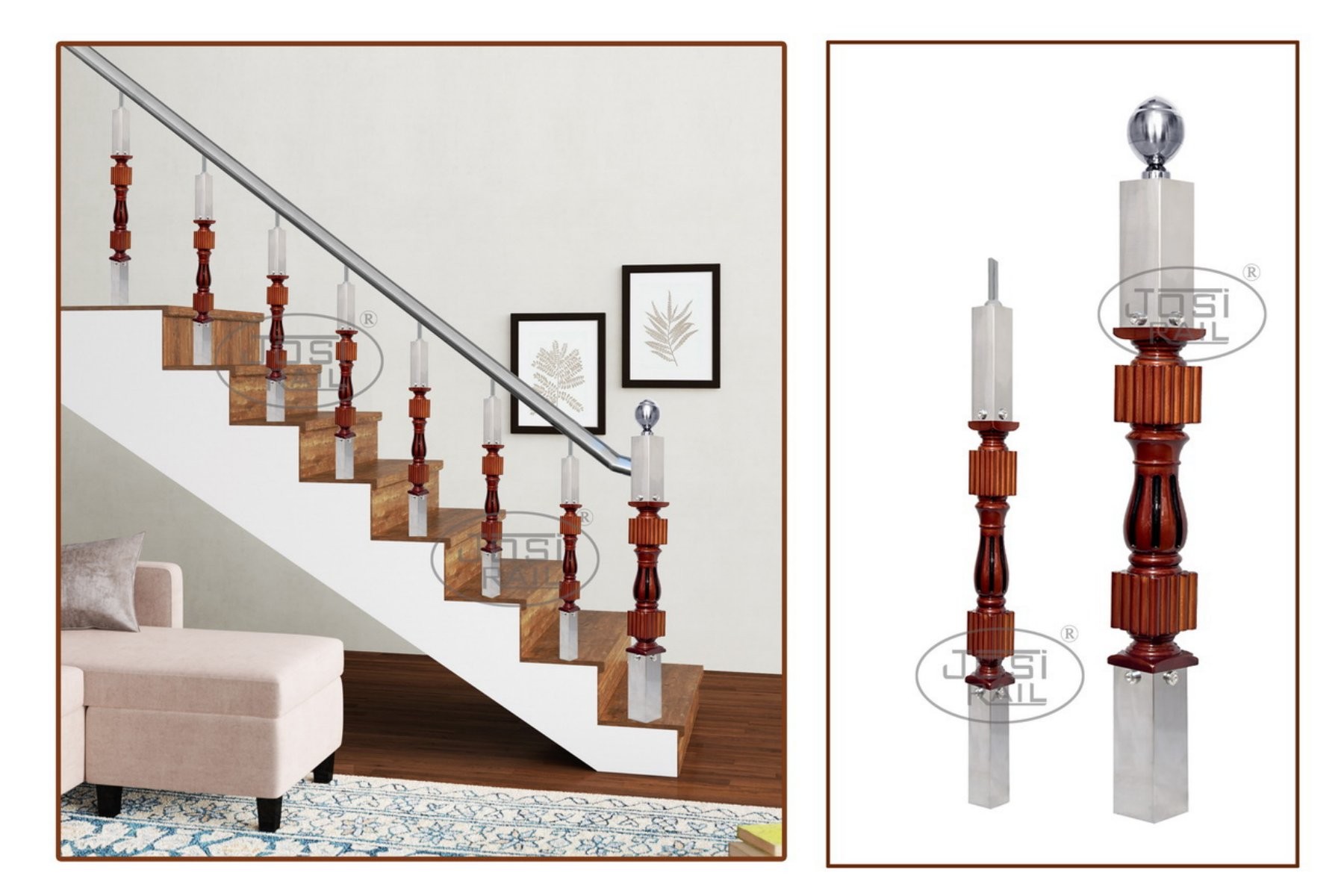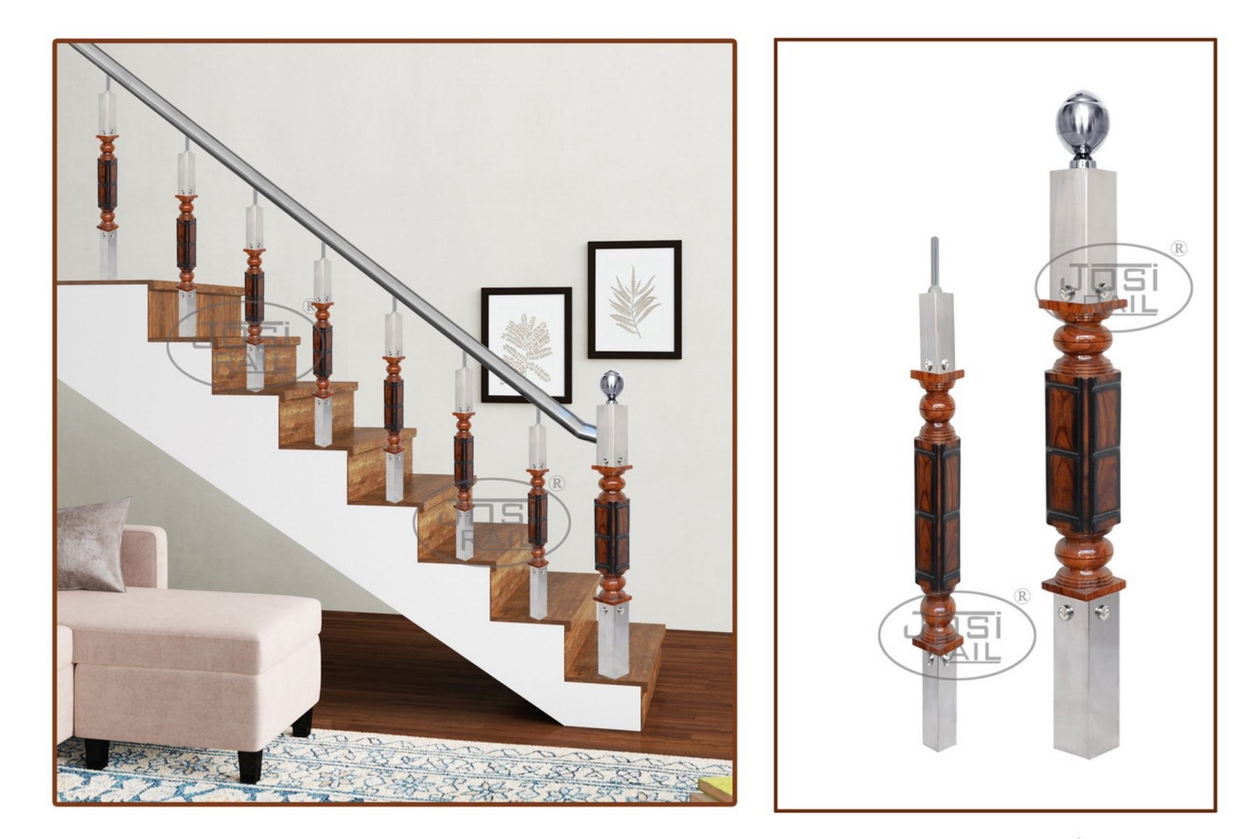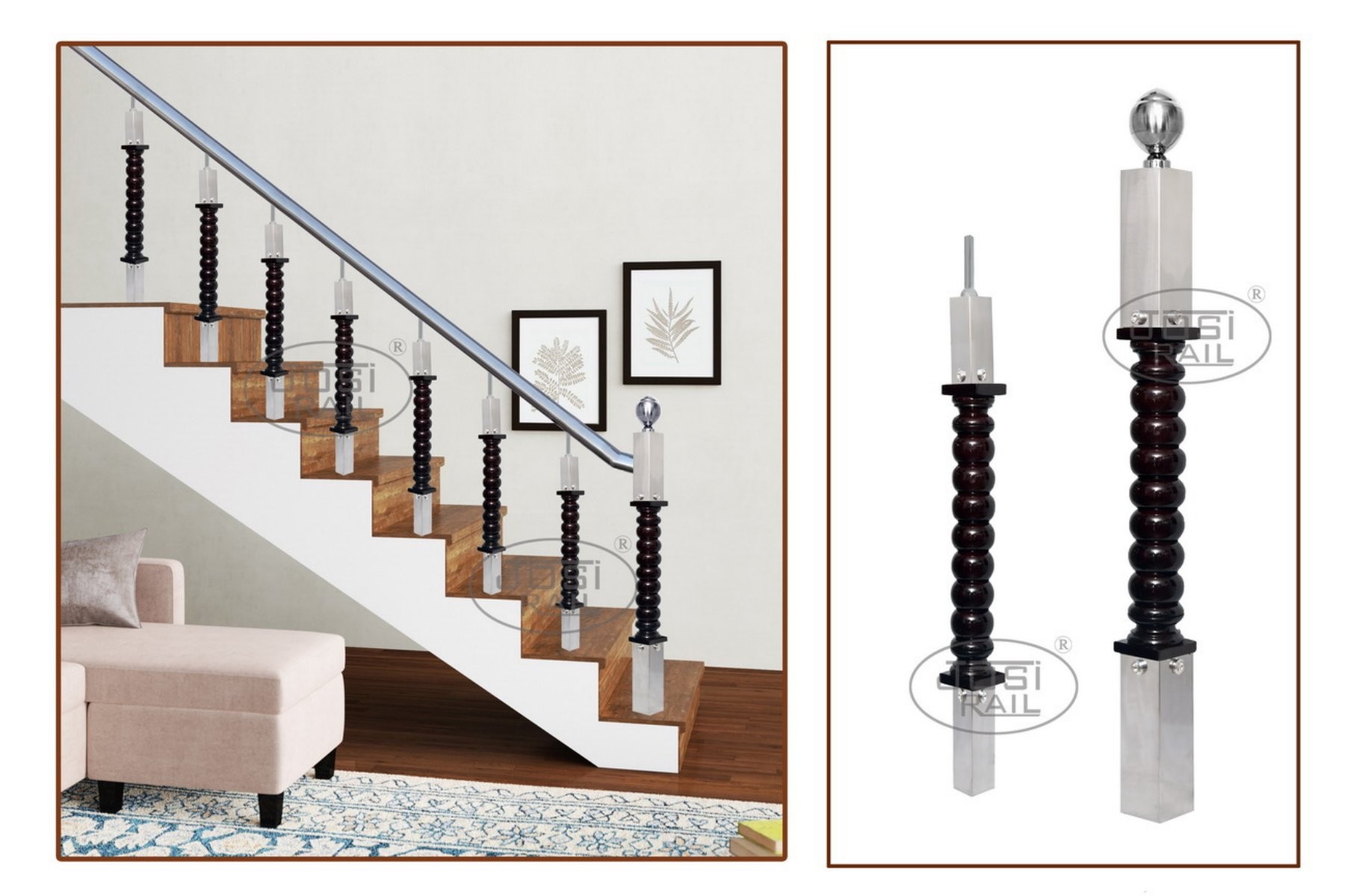 - Compatible with hybrid railing designs (Wood + Glass / SS / Acrylic)